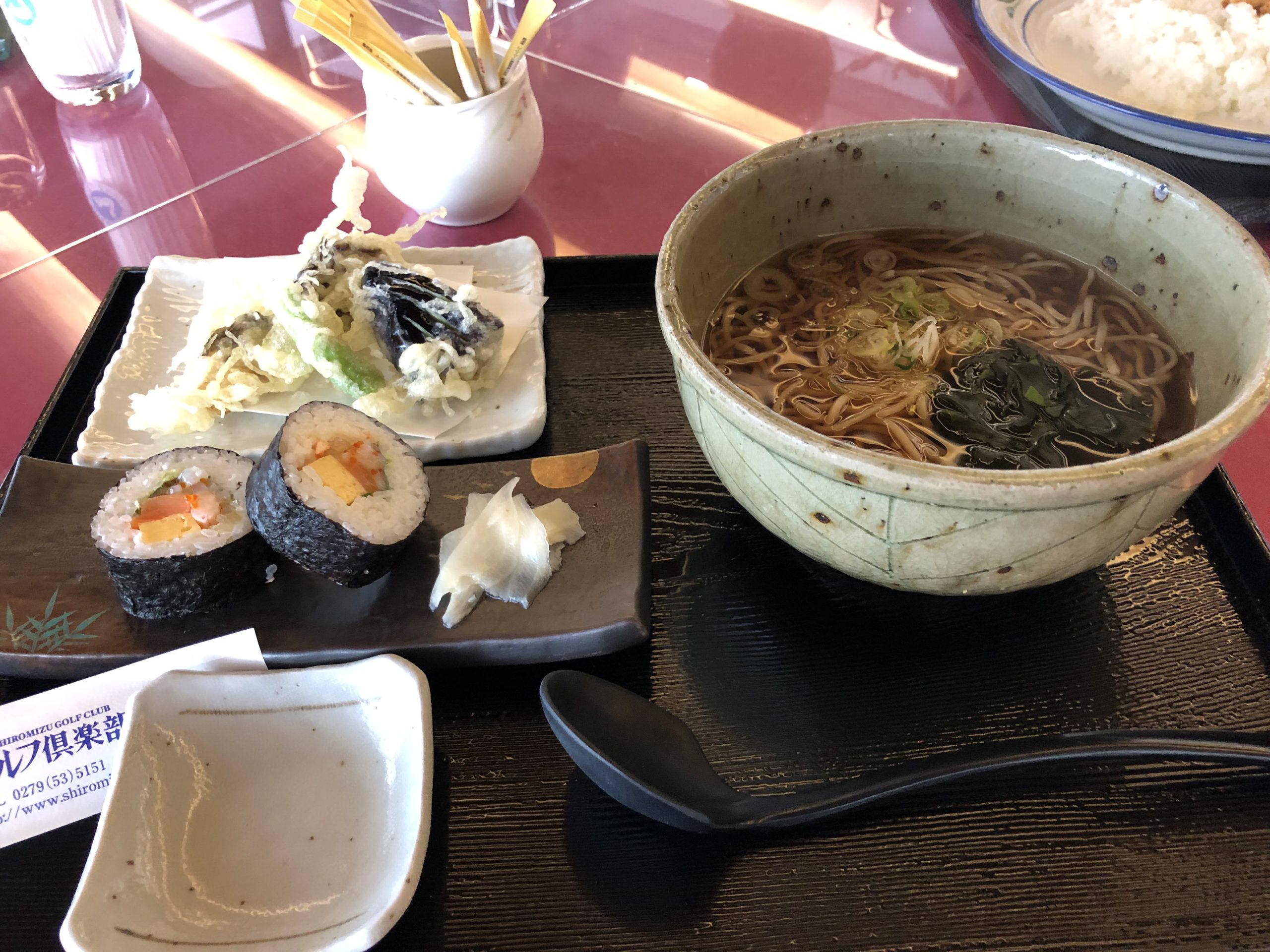お昼はそばを食べました。結構、種類が豊富で美味しいです。人気は”はまちゃんのもつ煮”とのことです。